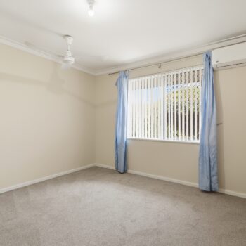 MASTER BEDROOM – Spacious room – Built in Robe, New Carpet, Skirting Boards, Vertical blinds, Ceiling Fan, Security grill on window, Reverse Cycle Air Conditioner (Carrier)