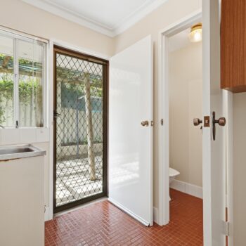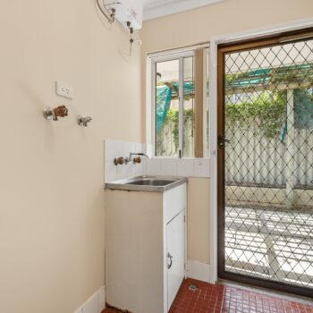 LAUNDRY – Tiled Floor, Security door, built in storage cupboard, rear door to courtyard