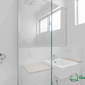 ENSUITE – Shower with Glass Screen, Stainless mixer with Hand Held Shower Rose, Toilet, Ceramic Basin, Stainless Mixer, Vanity with Stone Top, LED Lighting