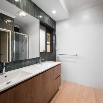 ENSUITE – Brand New Renovation – floor to ceiling quality tiling, toilet, vanity with stone tops, double ceramic basins, stainless mixer, stainless Shower head + handheld shower..heater lamp, roller shutter